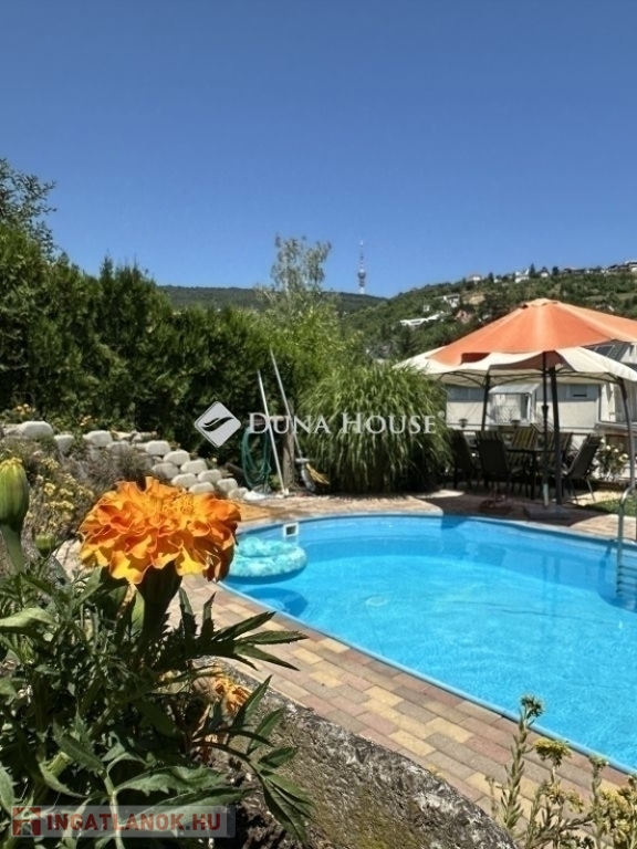 Nagy medence, melyből csodálatos panoráma nyílik a TV-toronyra és a Mecsekre.