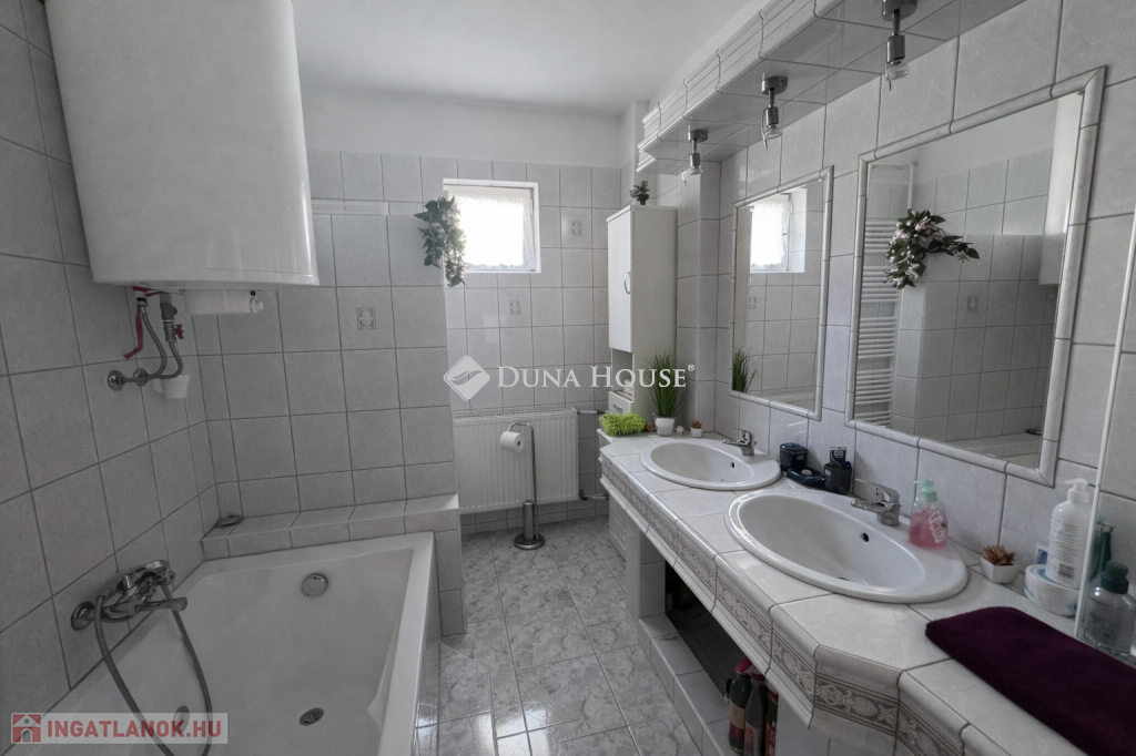 Tágas családi ház mini garzon lakással eladó Pogányban Pécstől mindössze 6 km-rePécstől mindössze 6 km-re, Pogány csendes és nyugodt részén eladóvá vált egy belső kétszintes, rendkívül tágas családi ház, amely ideális választás nagycsaládosoknak, több generáció számára vagy akár vállalkozási célra is.Az ingatlan egyik különlegessége, hogy a főépület mellett egy különálló mini garzon lakás is tartozik hozzá, amely lakásként, irodaként, üzlethelyiségként vagy vendéglakásként is könnyedén hasznosítható.A ház elrendezéseEmeleti lakótér4 különálló, kifejezetten tágas hálószobafürdőszobaminden szobához saját erkély vanA szobák mérete az ingatlan egyik legnagyobb előnye: nagyon tágas, kényelmes életteret biztosítanak a család minden tagja számára.Földszinti lakótér21 m²-es konyhaétkező35 m²-es világos nappali, amely tökéletes helyszíne a családi együttléteknekMűszaki jellemzőkAz ingatlan az elmúlt években több korszerűsítésen is átesett:3 éve cserélt nyílászárók, redőnnyel felszerelveSzigetelt épület, szigetelt tető illetve bramac tető van az épületen3 éves kondenzációs gázkazánnapelem rendszer, amely az ingatlan teljes áramfogyasztását fedeziEnnek köszönhetően a ház fenntartási költsége rendkívül kedvező.Telek és melléképületekAz ingatlanhoz több praktikus kiegészítő is tartozik:garázsfedett kocsibeállónyári konyhagazdálkodásra alkalmas melléképületekÍgy az ingatlan gazdálkodásra vagy állattartásra is kiváló lehetőséget biztosít.ElhelyezkedésPogány Pécstől néhány perc autóútra található, mégis nyugodt, családias környezetet kínál.