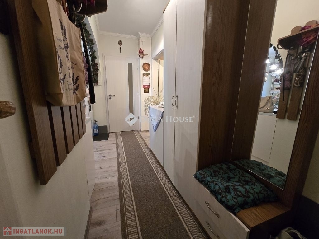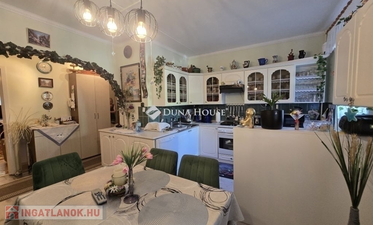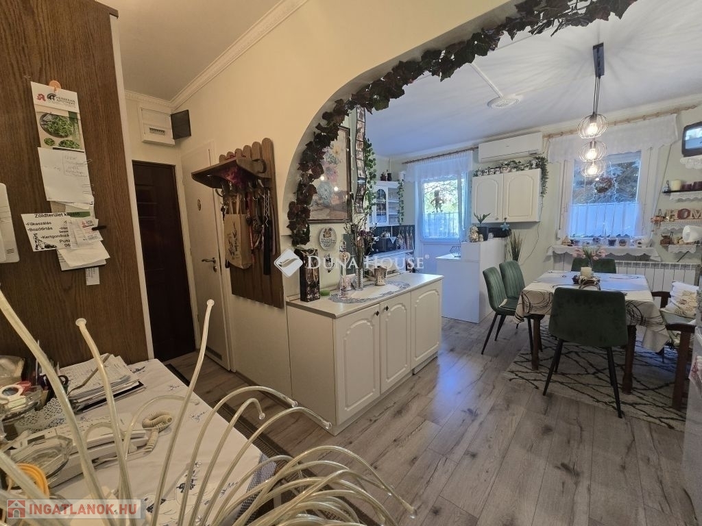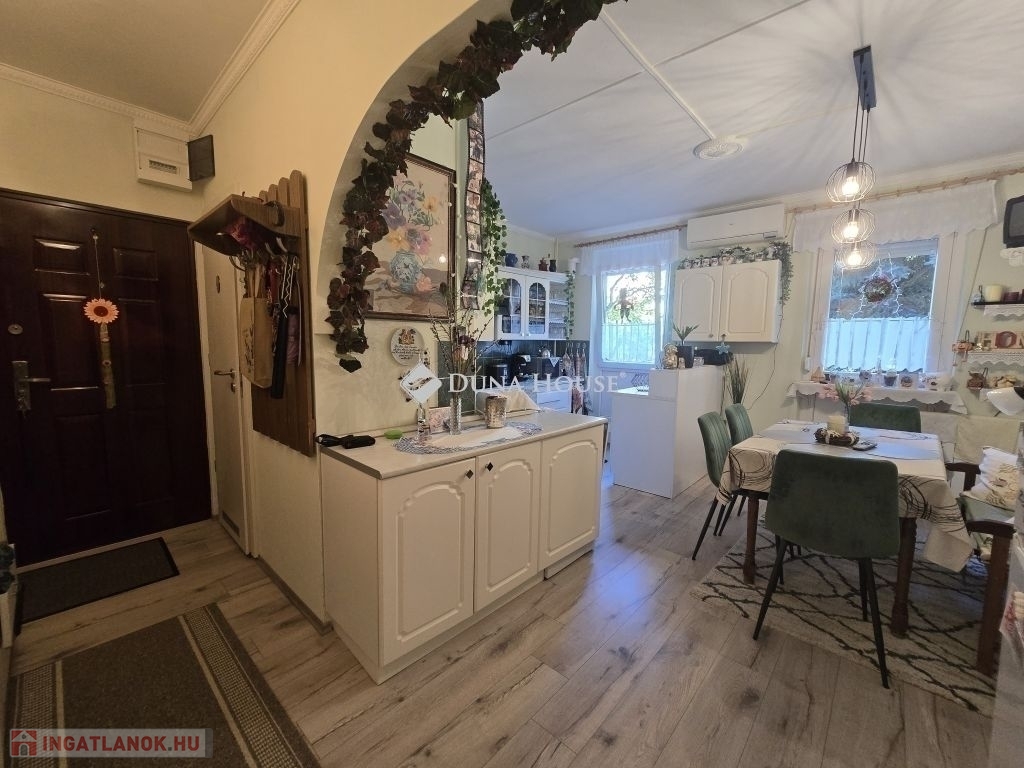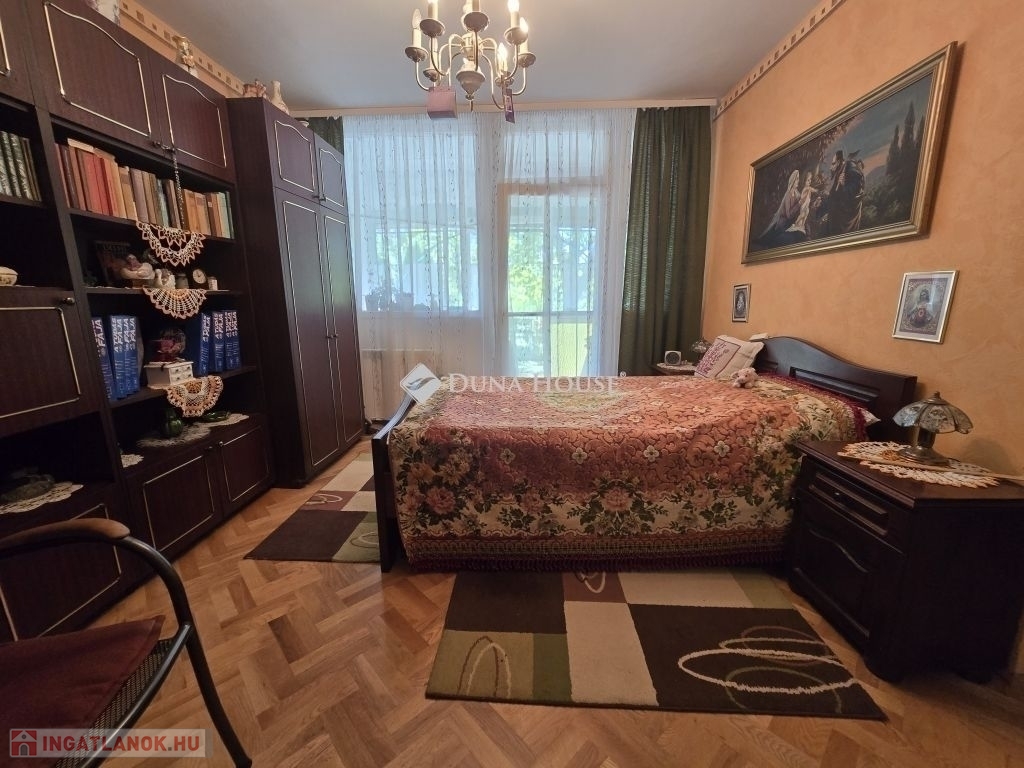 Eladó 74 m2-es, földszinti, kertkapcsolatos lakás kertvárosi környezetben!Eladásra kínálunk a Nagy Imre úton egy 74 m²-es, jó állapotú, földszinti lakást egy négyemeletes, szigetelt panelépületben. Az eredetileg 3,5 szobás elrendezés modern igényekre lett átalakítva: tágas konyha-étkező és három külön nyíló hálószoba várja új tulajdonosát.A lakáshoz tartozik egy különleges adottság: az önkormányzattal kötött használati megállapodás alapján egy kerítéssel körbevett zöld terület, virágos kert is a tulajdonos kényelmét szolgálja. A gondozott kertben hintaszék, kerti asztal és székek is helyet kaptak így a lakás valódi kertkapcsolatos otthon érzetét nyújtja.Főbb jellemzők:-műanyag nyílászárók (redőnnyel, szúnyoghálóval),-klímaberendezés,-részben cserélt beltéri ajtók,-rendezett, csendes lakóközösség,-nagy tároló ketten osztozva-kertkapcsolat-jó közlekedés, kertvárosi, nyugodt környezet.Az ingatlan tehermentes a kiköltözés picit hosszabb időt igényel. A lépcsőház tiszta ,rendezett a lakóközösség kiváló!Ez az ingatlan ideális választás családoknak vagy bárkinek, aki a kényelmes lakás előnyeit szeretné ötvözni a saját kert nyugalmával.További kérdéseivel és személyes megtekintésért várom hívását!
