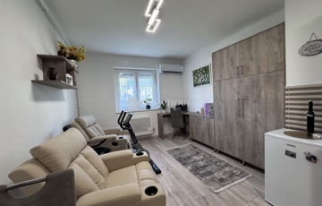 Komlón, a Petőfi téren eladó egy teljes körűen felújított, 26 m²-es garzonlakás berendezéssel együtt!Az ingatlan tehermentes, azonnal költözhető.A lakás jellemzői:Teljeskörű felújításÚj konyhabútor és új fürdőszobaÚj műanyag nyílászárókFűtés: klíma + gázkonvektorA komplett berendezés és bútorzat a vételár részét képeziKiváló választás első lakásnak vagy befektetésnek egyaránt!